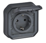 Gniazdo podtynkowe Schuko 2P+Z komplet IP55 zaciski śrubowe 16A-250 Antracyt Legrand Nowe Plexo