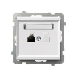 Gniazdo bryzgoszczelne z uziemieniem IP-44 wieczko w kolorze wyrobu Ospel Sonata Biała