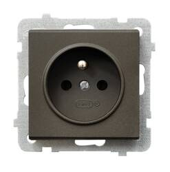 Gniazdo pojedyncze z przesłonami torów prądowych Ospel Sonata Czekoladowy Metalik