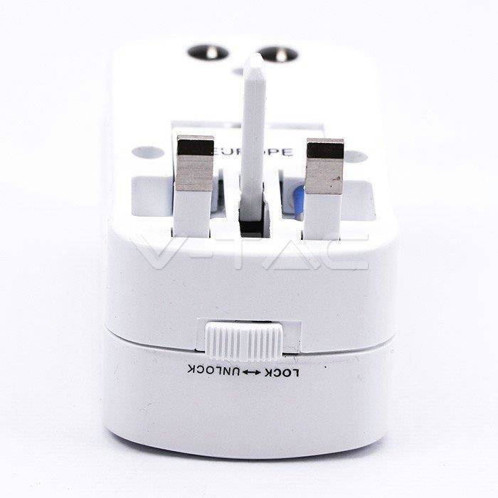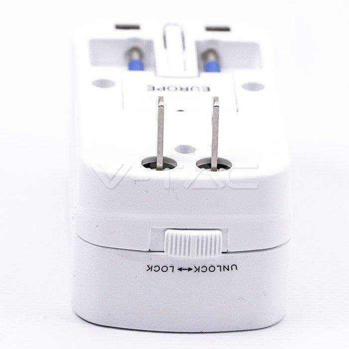 Uniwersalny Adapter Podróżny z zabezpieczeniem 2xUSB 2A V-TAC