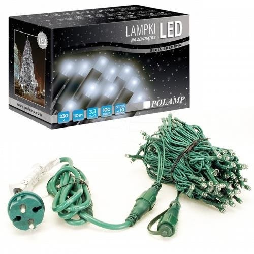 ,Lampki choinkowe LED z efektem FLASH do zastosowania zarówno na zewnątrz jak i wewnątrz z 100 diodami LED o długości 10mb. Lampki świąteczne znajdują zastosowanie szczególnie do ozdabiania choinek, okien, aranżacji wewnętrznej i zewnętrznej oraz do dowolnego oświetlenia świątecznego. Występują w wielu kolorach świecenia. Lampki posiadają co 5 diodę FLASH, które powodują niesamowity efekt błysku. Funkcja ta działa automatycznie. Lampki ledowe zakończone są hermetycznym gniazdem 230V dzięki czemu istnieje możliwość podłączenia do 10 zestawów.
