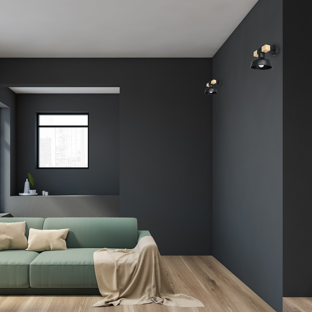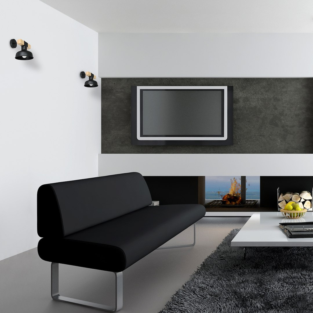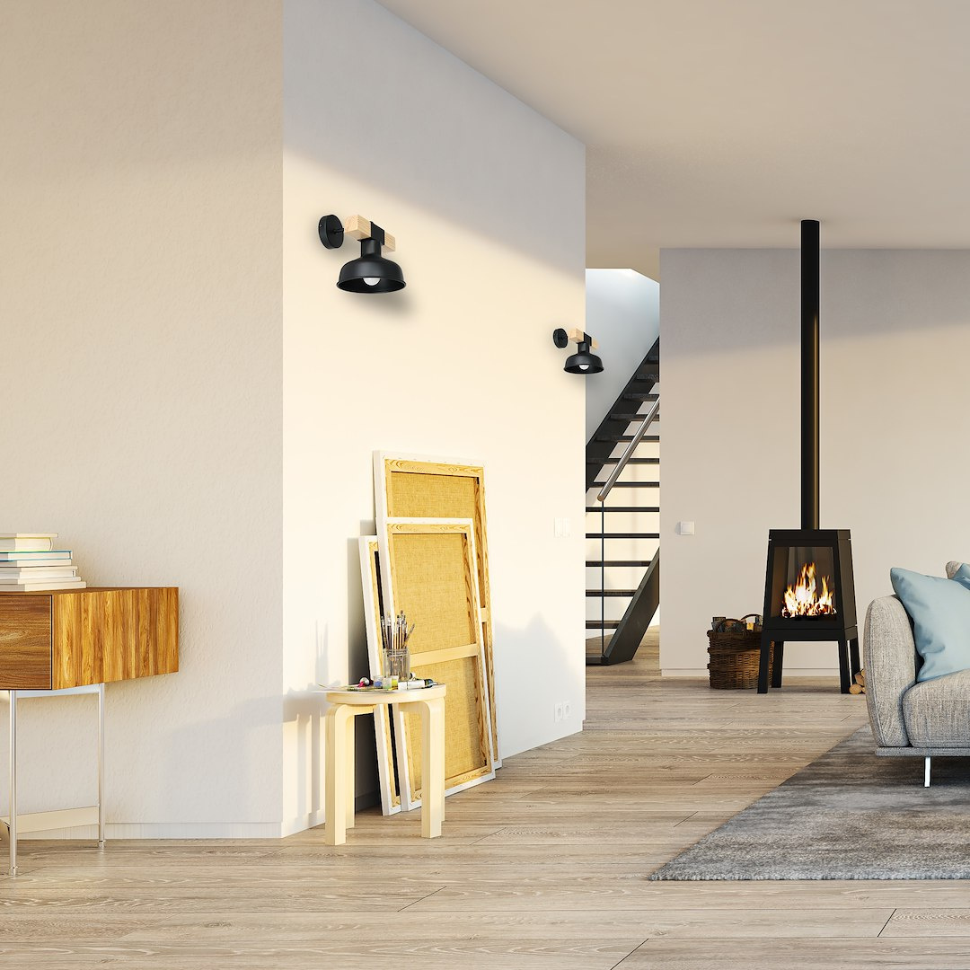 Kinkiet FARO CZARNY / NATURALNE DREWNO 1xE27 60W