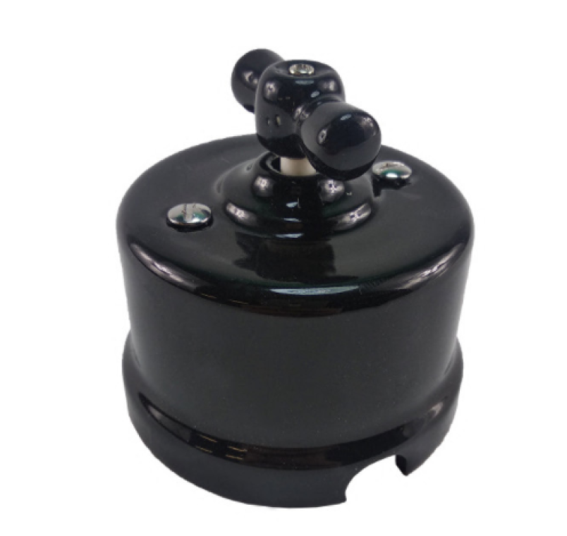 Włącznik ceramiczny obrotowy krzyżowy czarny natynkowy