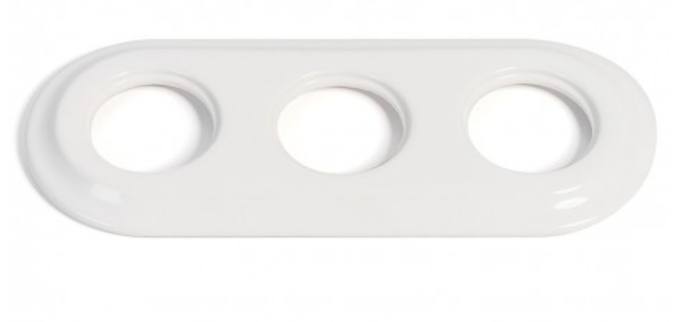 ,Elegancka ramka ceramiczna potrójna do gniazd i włączników podtynkowych. Kolor: biały.