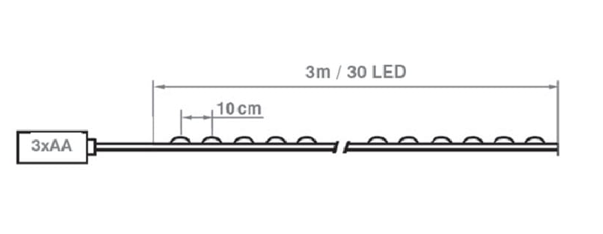 ,Miniaturowe lampki dekoracyjne LED w kształcie "łezki" do zastosowania wewnątrz z kolekcji brązowej z 30 diodami LED o długości 3mb. Lampki te znajdują zastosowanie szczególnie do ozdabiania ozdób świątecznych jak stroików, choinek, okien, aranżacji wewnętrznej oraz do dowolnego oświetlenia dekoracyjnego. Występują w kolorze barwy ciepłej. Zasilane są z 2 baterii 1.5V AA (będących w zestawie). Załączanie oświetlenia odbywa się przy pomocy włącznika zabudowanego w osłonie baterii. Doskonale sprawdzają się wszędzie tam gdzie nie ma możliwości podłączenia do sieci elektrycznej.