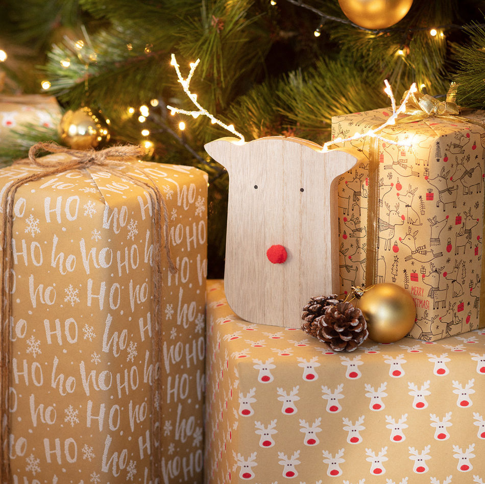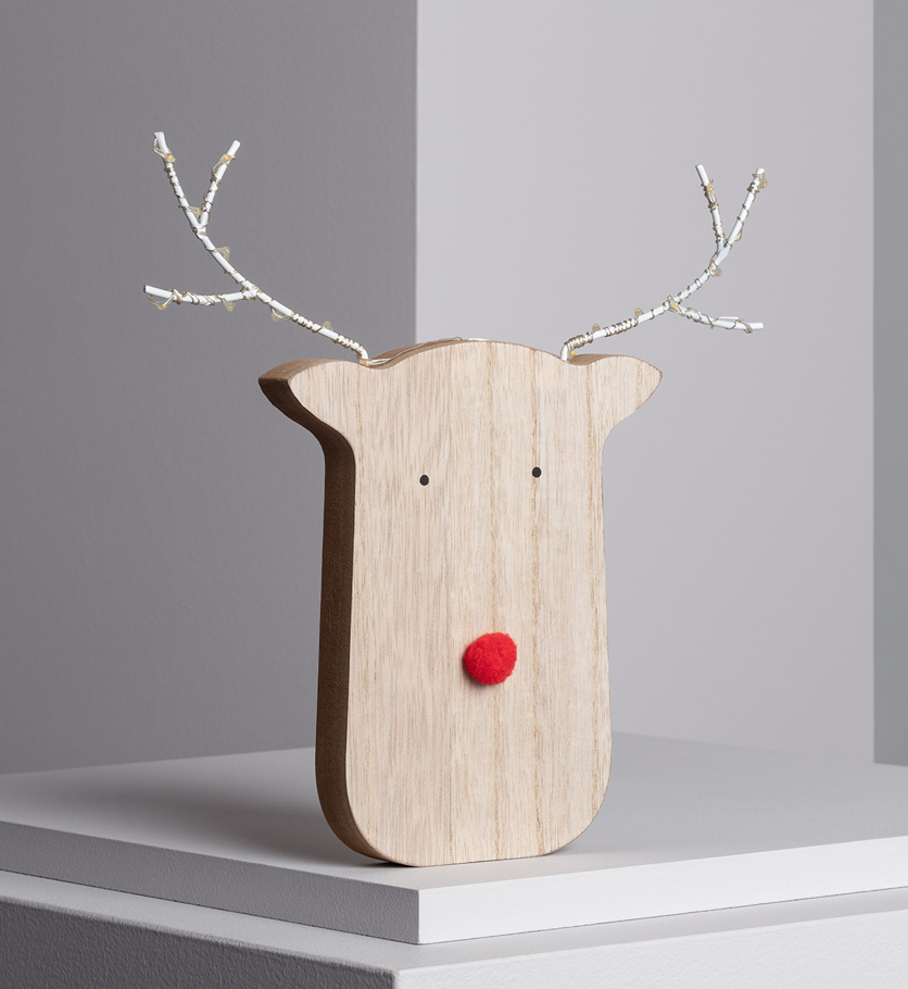 ,Świąteczny renifer LED drewniany na baterie