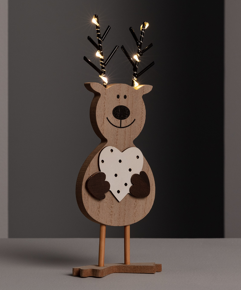,Świąteczny renifer LED drewniany na baterie