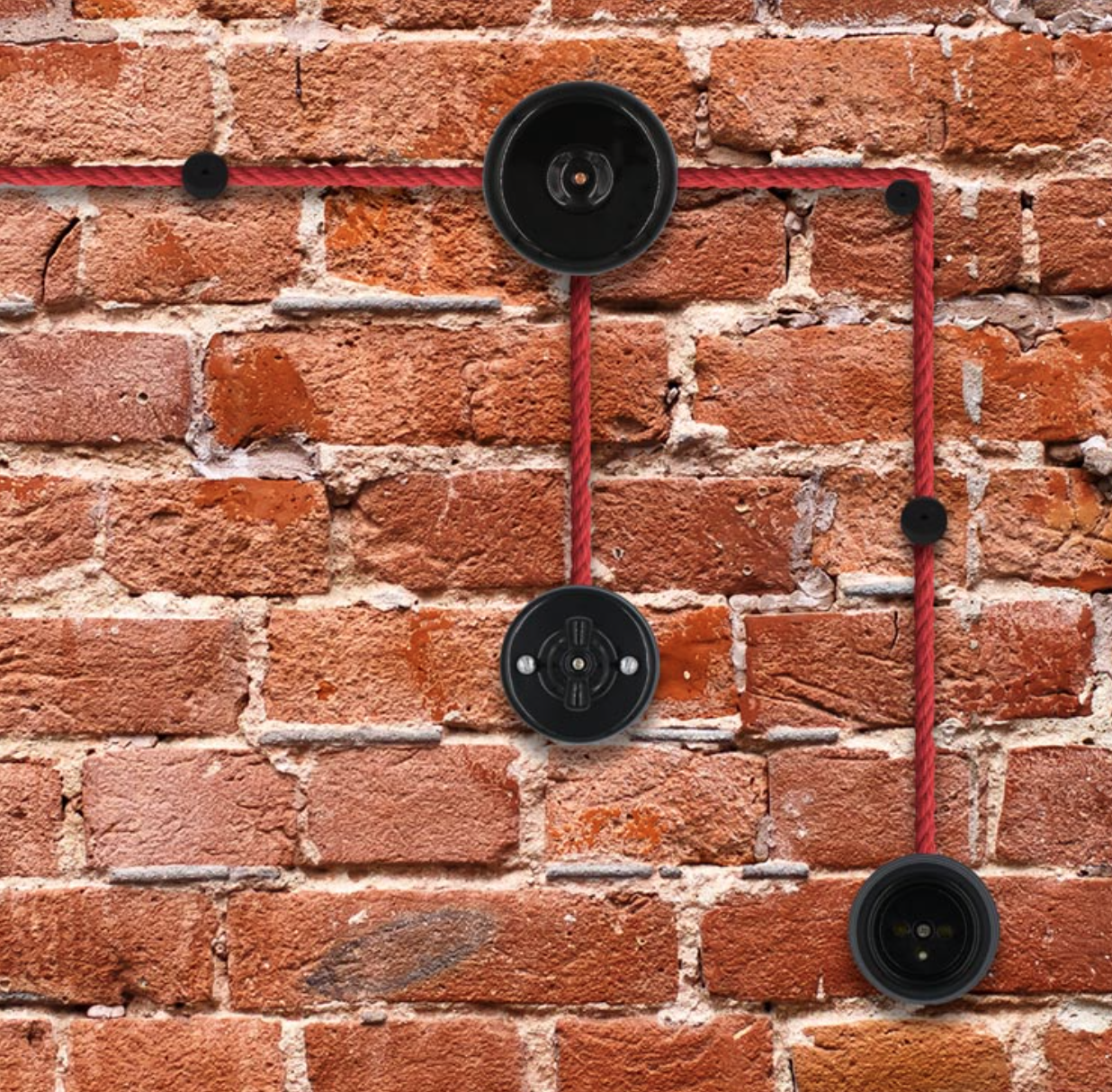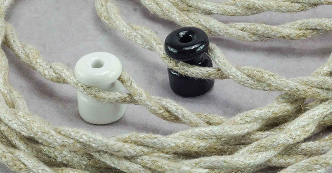 ,Uchwyt do mocowania kabli elektrycznych i oświetleniowych na ścianie lub suficie. Pozwala na rozmieszczenie przewodów na ścianie w dowolny sposób i według własnych potrzeb. Uchwyt jest odpowiedni do okrągłych kabli w oplocie oraz kabli skręcanych. Idealnie pasuje jako wykończenie wnętrz loftowych oraz wnętrz w stylu retro.