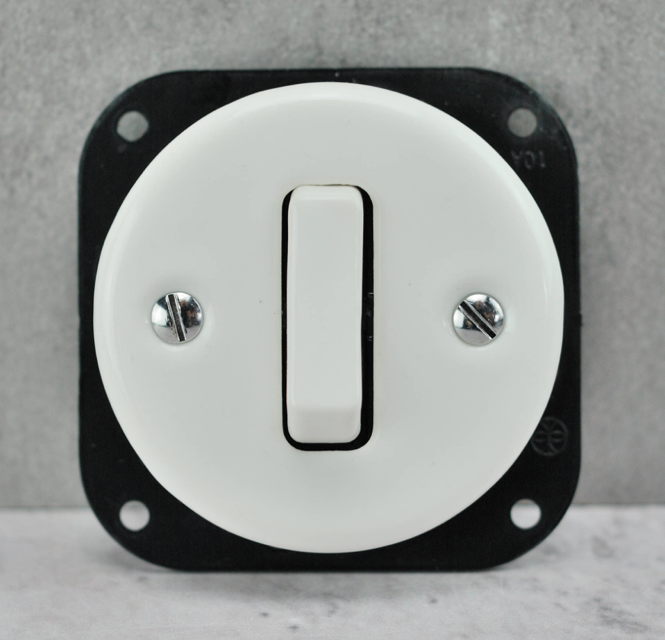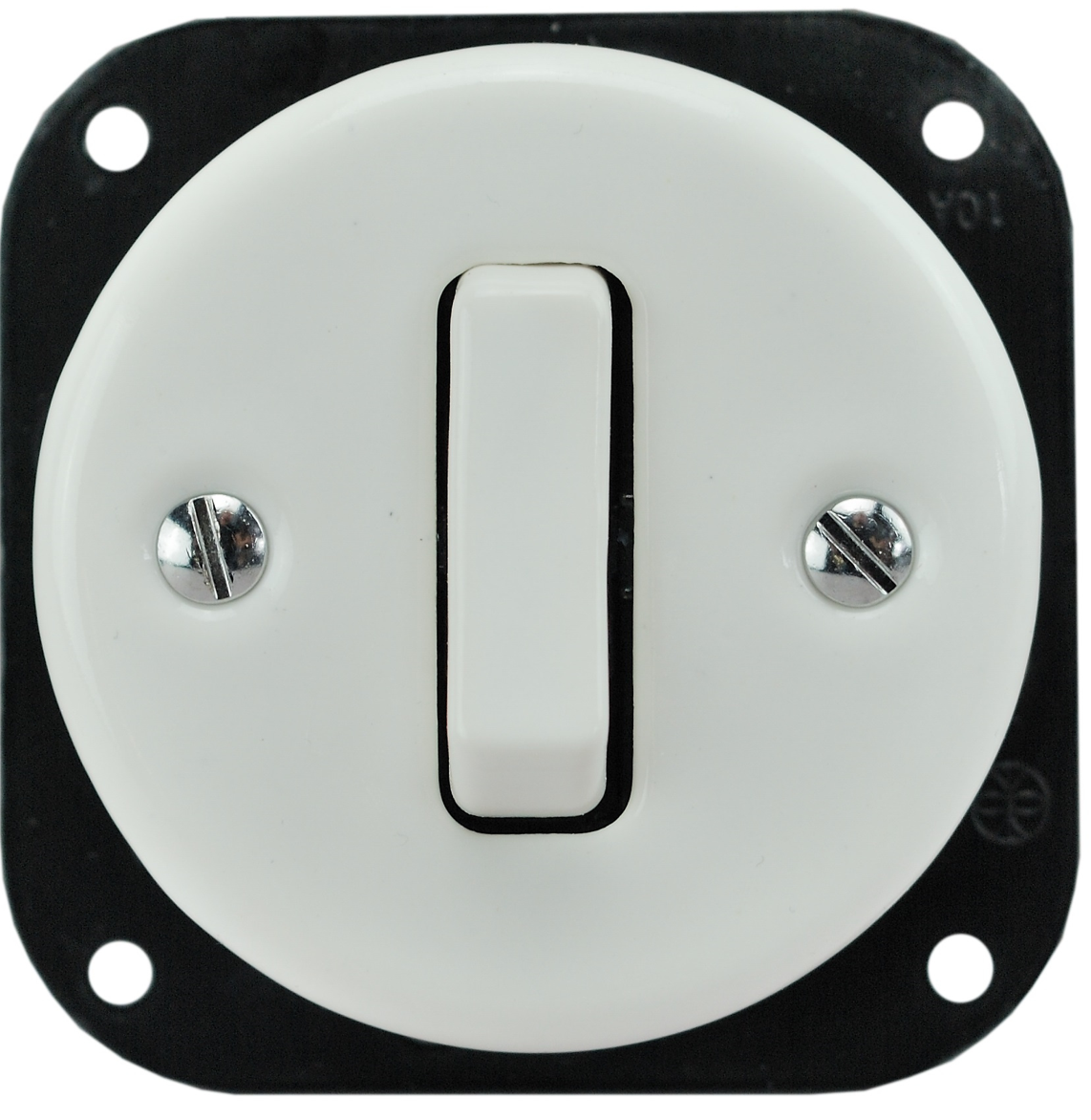 Włącznik ceramiczny pojedynczy schodowy podtynkowy biały Retro bez ramki