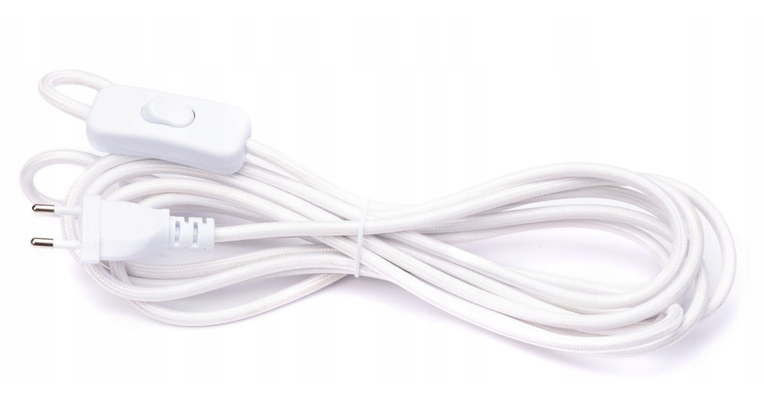 Przewód w oplocie dekoracyjnym 2,5m z włącznikiem biały