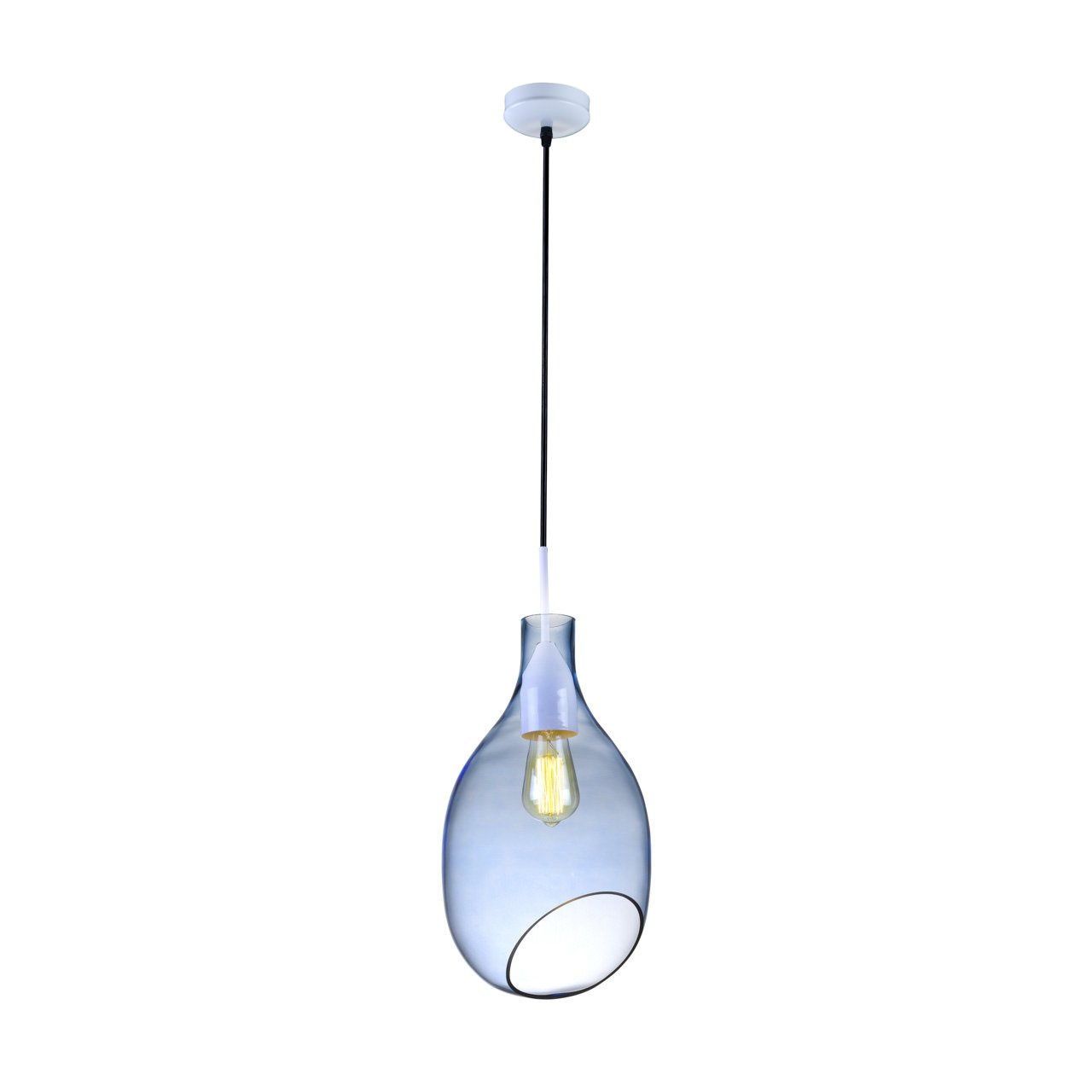 ,Minimalistyczna i bardzo subtelna lampa wisząca utrzymana w stylu glamour. Wyróżnia się prostą formą oraz specjalną budową klosza, która pozwala na idealne rozproszenie światła. Błękitne delikatne szkło nadaje lampie lekkości. Idealna propozycja do każdej nowoczesnej stylizacji wnętrz.