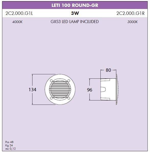 Oprawa elewacyjna ścienna LETI 100 ROUND-GR wpuszczana szara Y LED GX53 3W 3000K