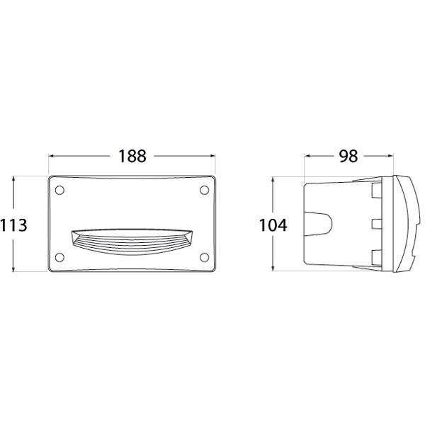 ,Leti oprawa elewacyjna prostokątna, w wersji przysłoniętej. Wykonana z wysokiej jakości materiałów. Możliwość uzyskania rozproszonej lub kierunkowej emisji światła. Ideala do oświetlenia powierzchni ściennych oraz podstopni schodów. Obudowa odporna na uderzenia. Wykonana z wytrzymałej żywicy lanej. Klosz z trwałego tworzywa sztucznego. Odporna na promieniowanie UV, korozję. Wersja LED potwierdzona certyfikatem TUV. Energooszczędne i wydajne źródło LED GX53. Dostępna w trzech wersjach obudowy. Możliwość uzyskania rozproszonej lub kierunkowej emisji światła. II klasa ochronności. Klasa szczelności IP66. Oprawa w komplecie posiada źródło światła - LED GX53 3W 3000K.