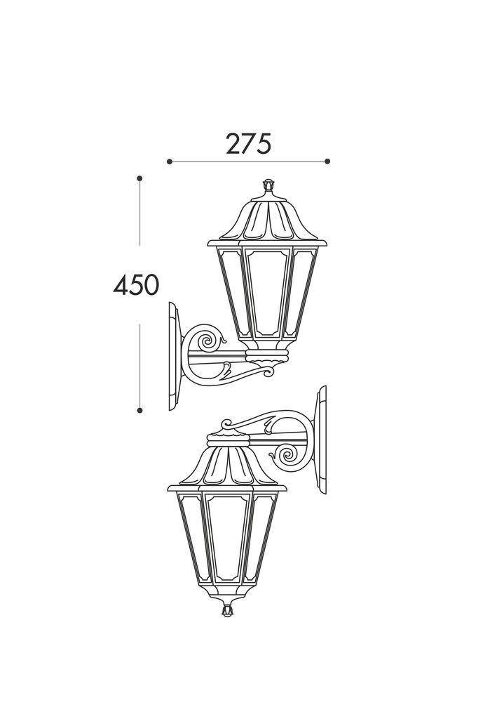 ,Anna kinkiet ścienny, sześciokątny, tradycyjne wzornictwo. Idealny do montażu na elewacjach. Obudowa odporna na uderzenia. Wykonana z wytrzymałej żywicy lanej. Klosz przezroczysty z trwałego tworzywa sztucznego. Odporna na promieniowanie UV, korozję. II klasa ochronności. Klasa szczelności IP55. Możliwość zamontowania góra/dół.