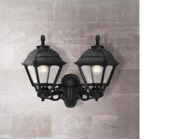 ,Porpora/Cefa podwójny kinkiet, tradycyjne wzornictwo. Obudowa odporna na uderzenia, wykonana z wytrzymałej żywicy lanej. Klosz przezroczysty z trwałego tworzywa sztucznego. Odporna na promieniowanie UV, korozję. II klasa ochronności. Klasa szczelności IP55.