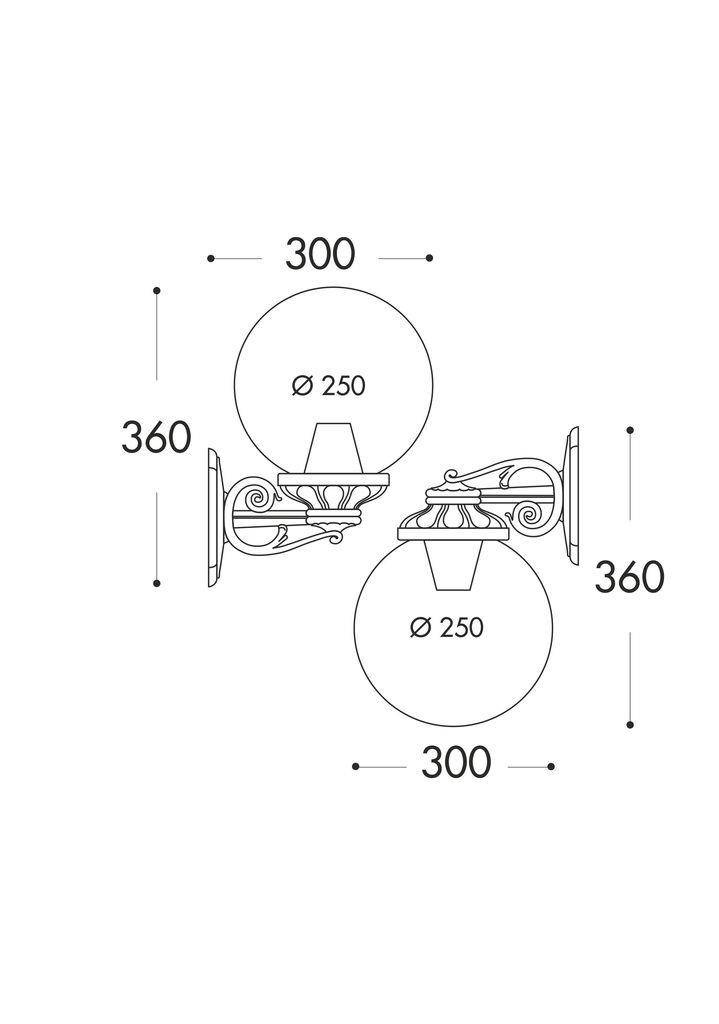 ,Bisso/G250 oprawa ścienna, klosz kulisty o średnicy 250 mm. Odporna na uderzenia, wykonana z wytrzymałej żywicy lanej. Odporna na promieniowanie UV, korozję. II klasa ochronności. Klasa szczelności IP55.