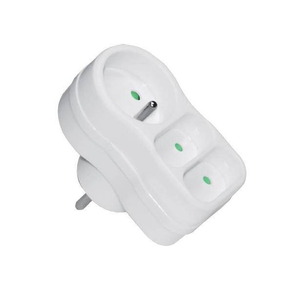 ,Praktyczny rozgałęźnik na jedno gniazdo z uziemieniem oraz dwa gniazda płaskie bez uziemienia 1x2p+Z+2x2p/II, w kolorze białym. Produkt przeznaczony do użytkowania wewnątrz pomieszczeń.