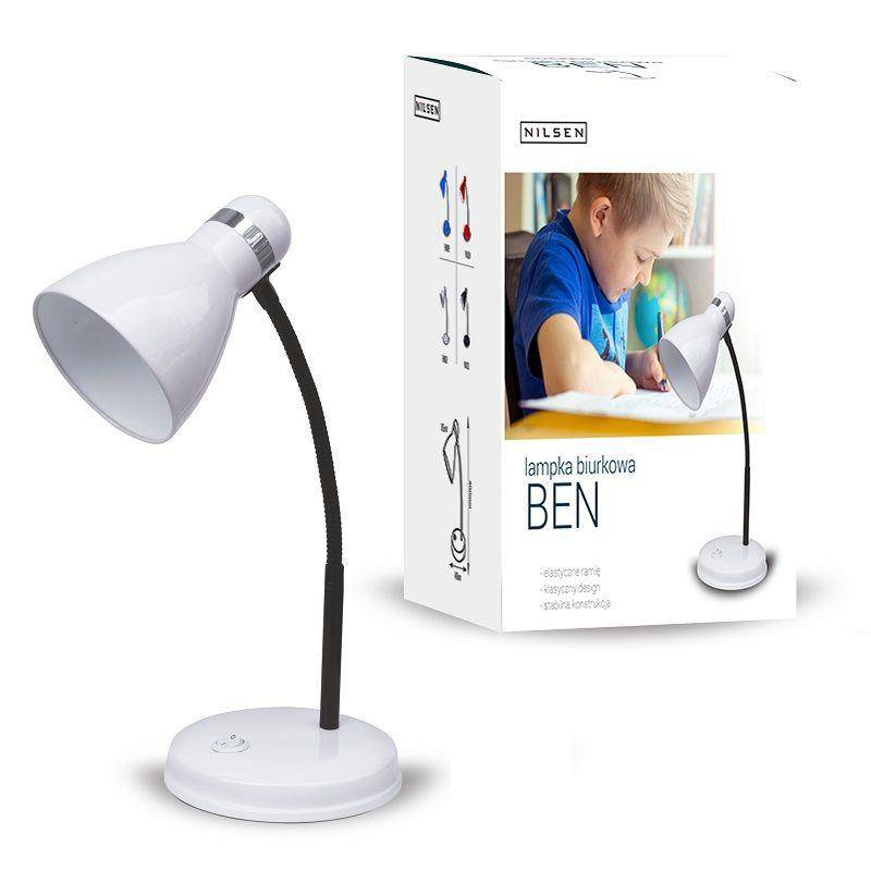 Lampka biurkowa Ben to klasyczna lampka, której prosty, uniwersalny design pasować będzie do każdej przestrzeni. Niewielki, kompaktowy rozmiar szczególnie sprawdzi się na biurku ucznia. Lampka wyposażona w regulowane ramię, dzięki któremu można dopasować kąt nachylenia i wysokość do własnych potrzeb. Starannie wykonany klosz daje dużo, równomiernie rozproszonego światła. Do lampki pasują źródła światła z gwintem E27. Klasyczny włącznik, umożliwia szybkie i intuicyjne uruchamianie lampki. Szeroka gama kolorystyczna lampki biurkowej Ben zachwyci małego ucznia i pozwoli na wybranie odpowiedniego modelu. Cechy wyróżniające lampkę biurkową Ben: