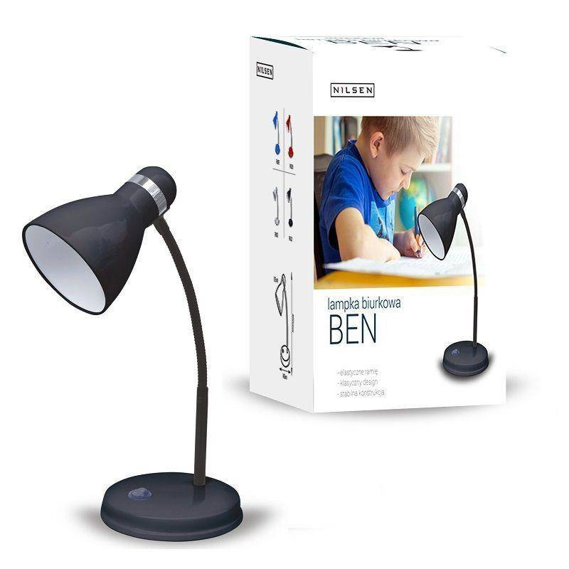Lampka biurkowa Ben to klasyczna lampka, której prosty, uniwersalny design pasować będzie do każdej przestrzeni. Niewielki, kompaktowy rozmiar szczególnie sprawdzi się na biurku ucznia. Lampka wyposażona w regulowane ramię, dzięki któremu można dopasować kąt nachylenia i wysokość do własnych potrzeb. Starannie wykonany klosz daje dużo, równomiernie rozproszonego światła. Do lampki pasują źródła światła z gwintem E27. Klasyczny włącznik, umożliwia szybkie i intuicyjne uruchamianie lampki. Szeroka gama kolorystyczna lampki biurkowej Ben zachwyci małego ucznia i pozwoli na wybranie odpowiedniego modelu. Cechy wyróżniające lampkę biurkową Ben: