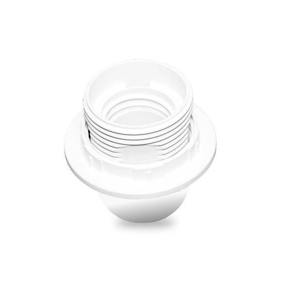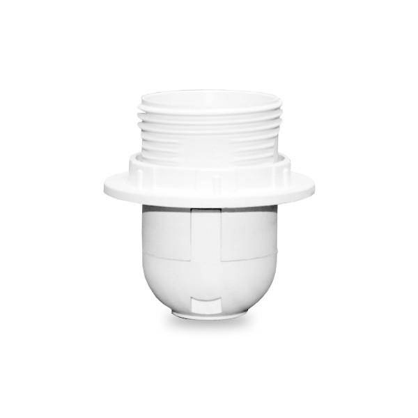 ,Oprawka z kołnierzem montażowym wykonana z tworzywa sztucznego. Przeznaczona do zamontowania żarówki/świetlówki kompaktowej/lampy LED dzięki wyposażeniu w standardowy gwint E27. Wytrzymała i łatwa w montażu.