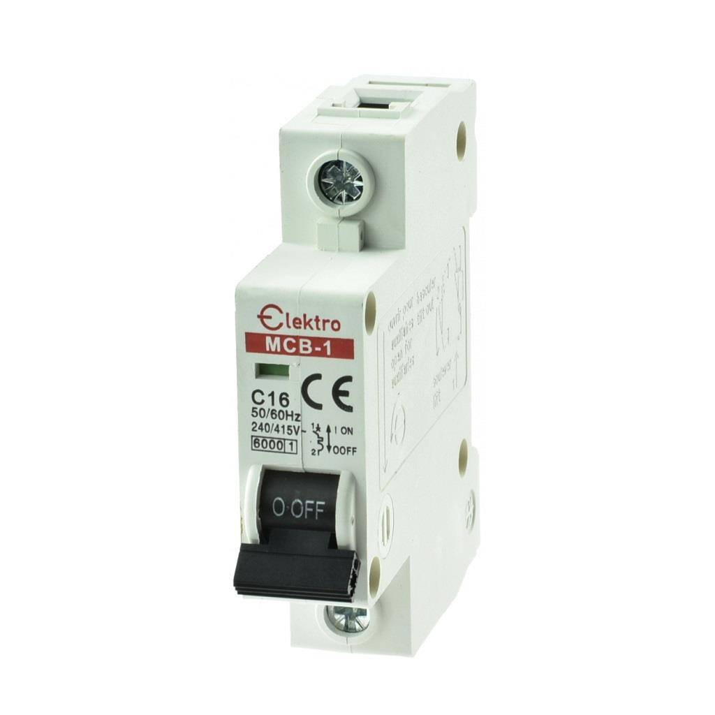 ,Jednobiegunowy wyłącznik nadprądowy, prąd znamionowy 16A, charakterystyka typu C.