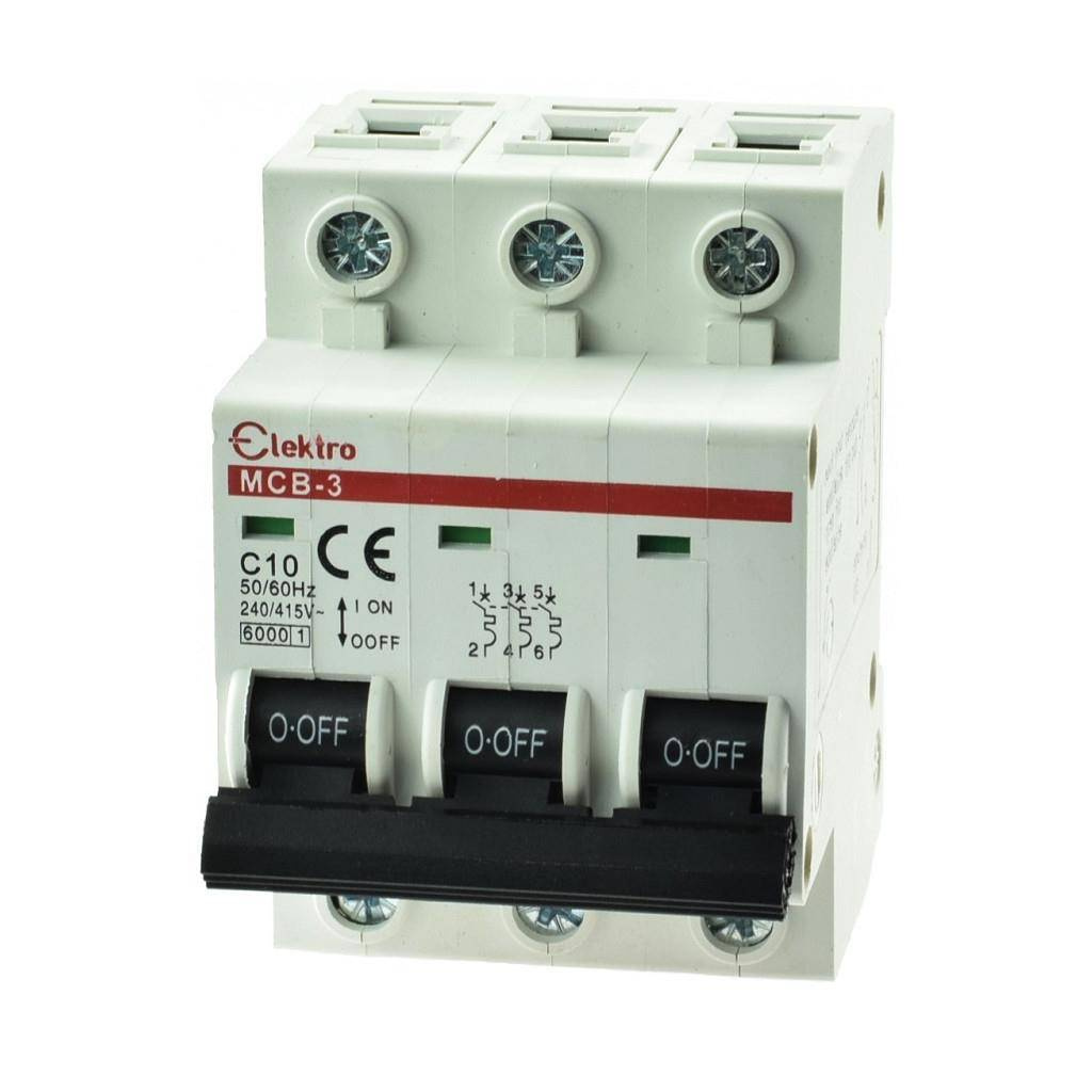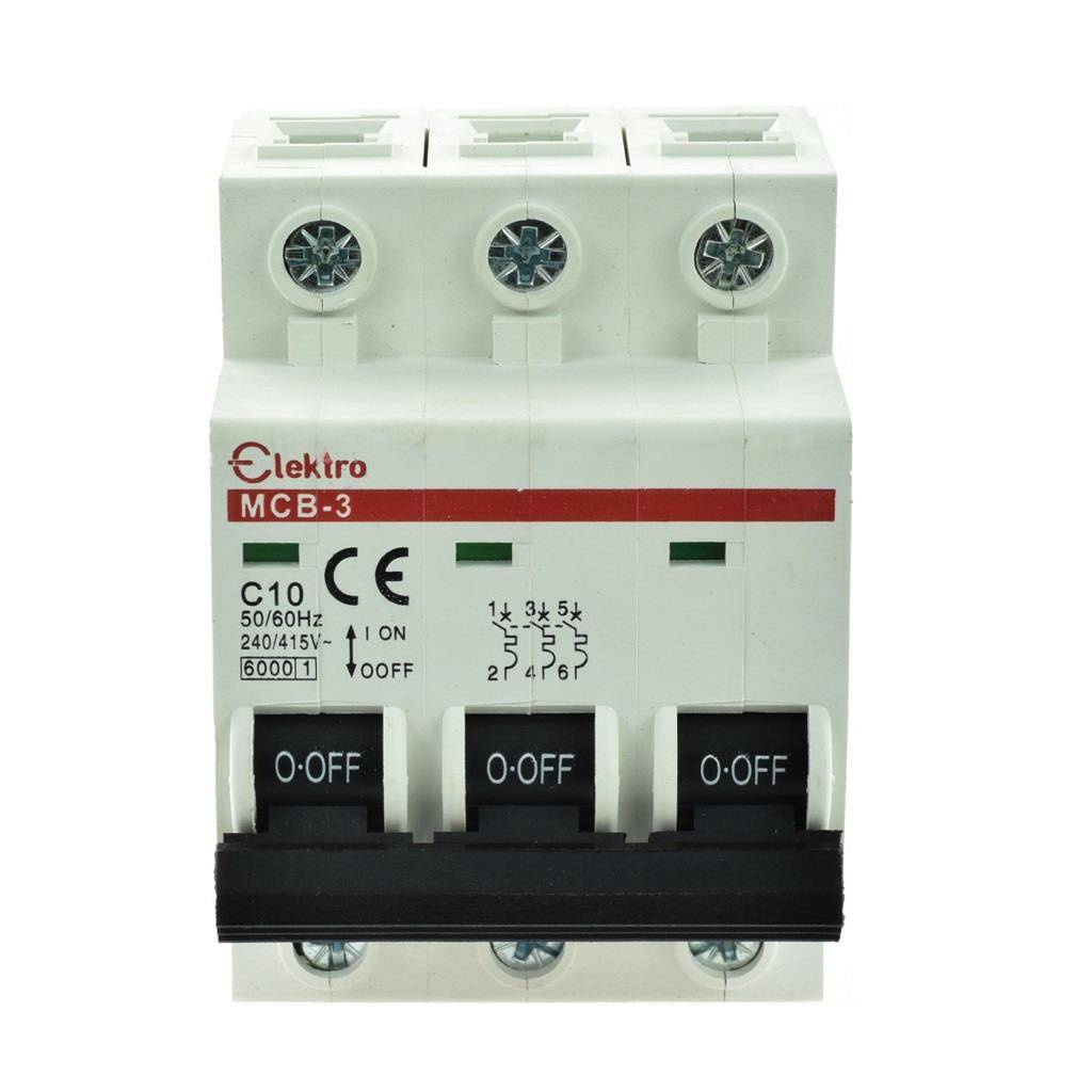 ,Trzybiegunowy wyłącznik nadprądowy, prąd znamionowy 10A, charakterystyka typu C