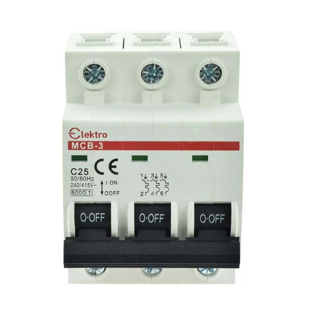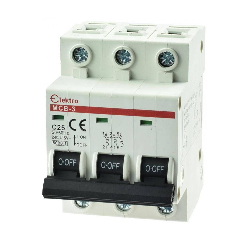 ,Trzybiegunowy wyłącznik nadprądowy, prąd znamionowy 25A, charakterystyka typu C