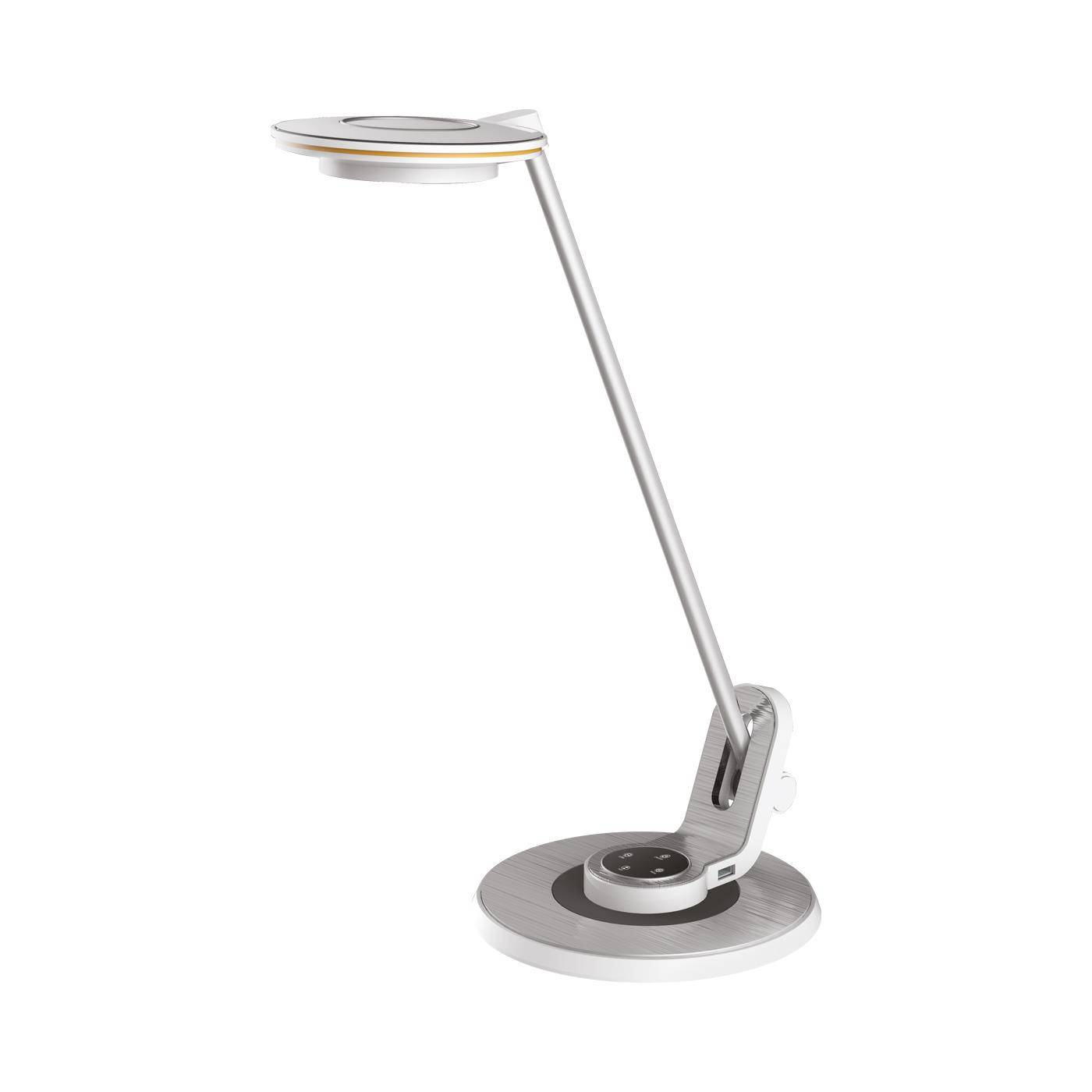 ,Lampka biurkowa Rita to bardzo funkcjonalna propozycja oświetlenia miejsca pracy lub nauki. Lampka o ciekawej, przyciągającej uwagę konstrukcji. Wyposażona w stabilną podstawę, ruchome ramię i ruchomą główkę wykończoną świetlnym elementem dekoracyjnym. Panel sterujący umieszczony w podstawie, pozwala na szybką zmianę ustawień lampki. Lampka biurkowa Rita posiada 3 barwy światła. Wybierzesz odpowiadającą Ci barwę światła: ciepłą, neutralną lub zimną, ustawisz odpowiednie natężenie światła. Lampkę biurkową Rita wyróżnia wbudowane gniazdo USB, z pomocą którego naładujesz telefon, tablet, notebook, itp. Cechy wyróżniające lampkę biurkową Rita:
