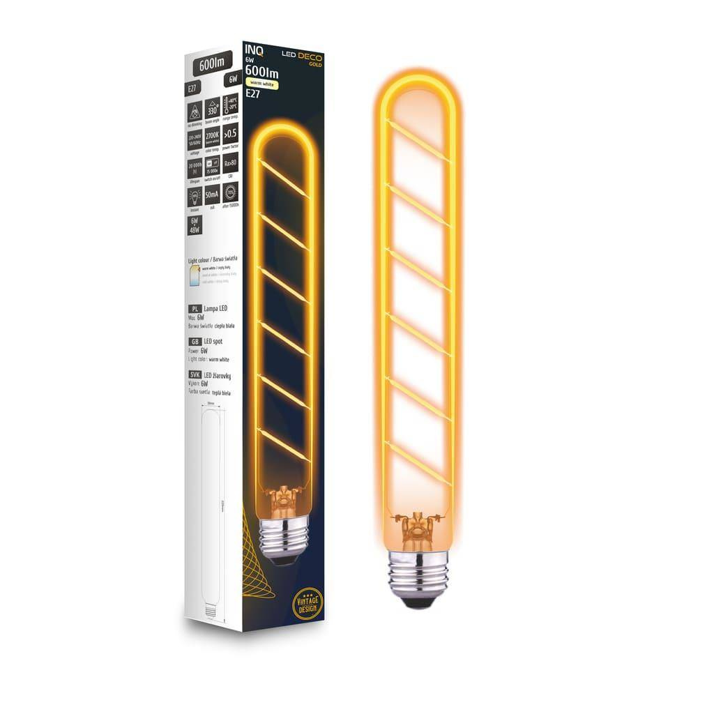 Żarówka LED filament amber T30 tubka E27 6W 2700K długa