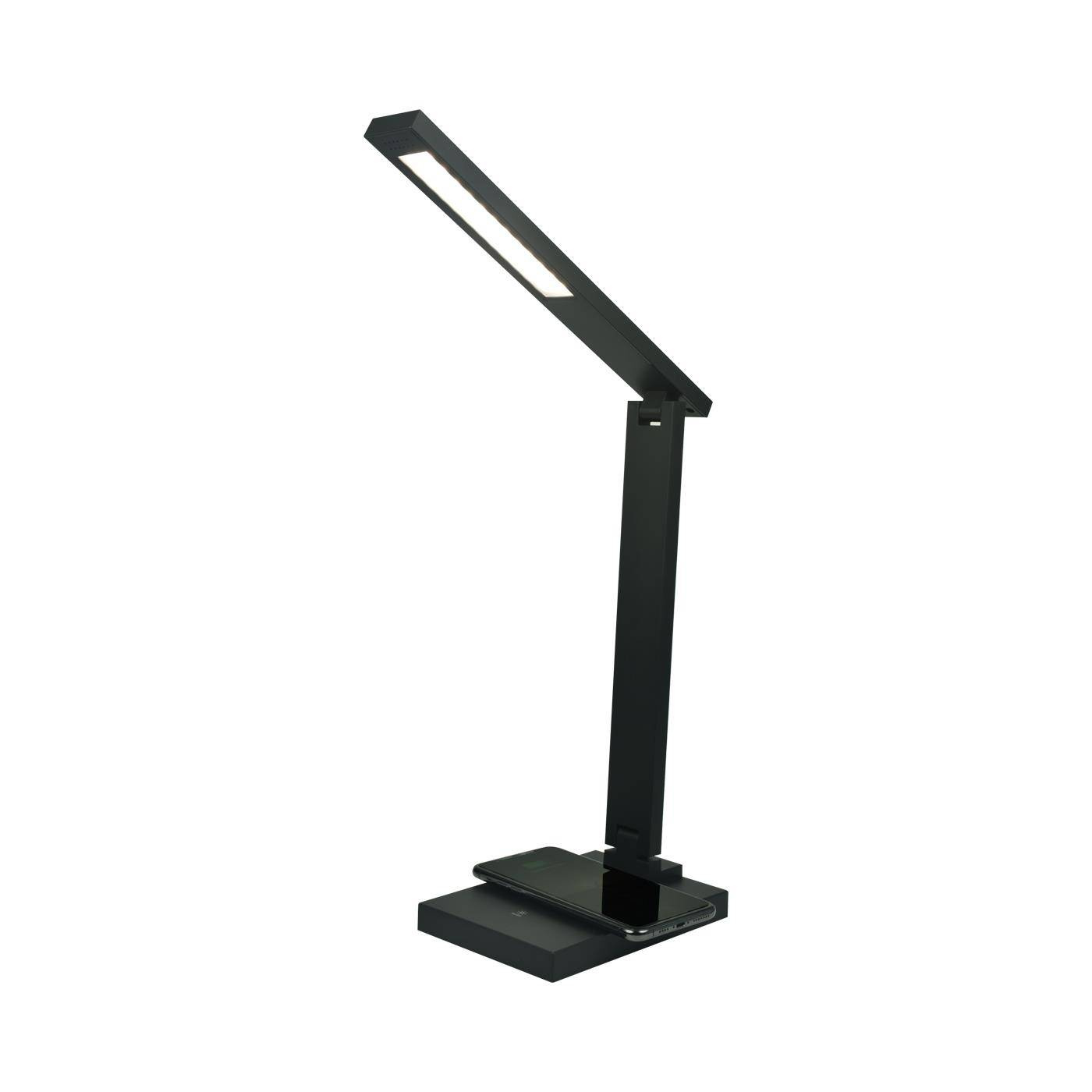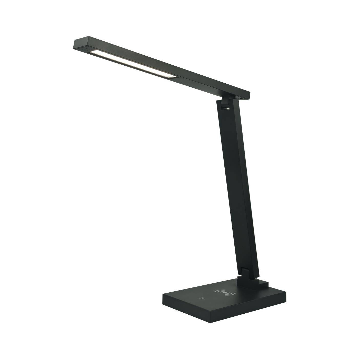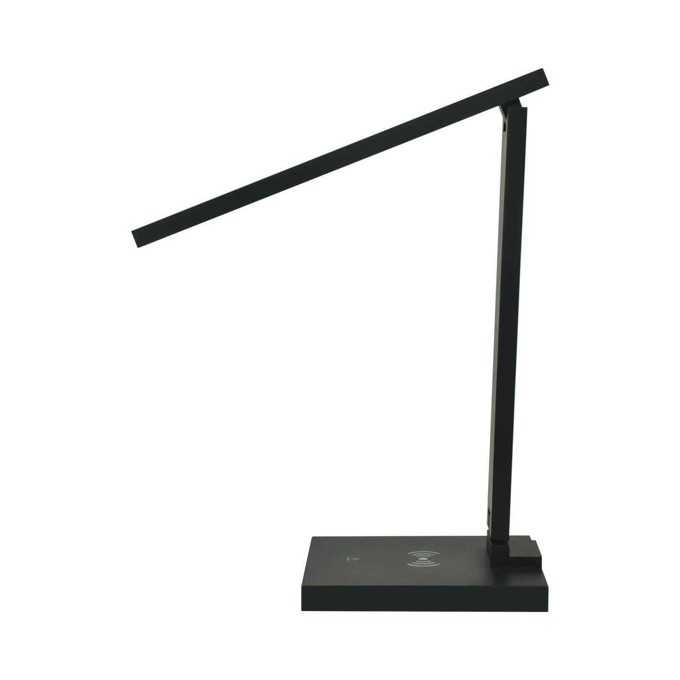 Lampka biurkowa Sara – to wielofunkcyjne urządzenie, które poza funkcją świecenia sprawdzi się również jako ładowarka do telefonu. Pozwala na to tradycyjne złącze USB oraz ładowarka indukcyjna wbudowana w podstawę lampki. Wystarczy położyć telefon w polu ładowarki, aby proces ładowania rozpoczął się. Dwa ruchome ramiona umożliwiają ustawienie odpowiedniego kąta padania światła. Neutralna barwa światła sprawdzi się zarówno podczas pracy, jak i aktywnego wypoczynku. Lampka wyposażona jest w funkcję regulacji natężenia światła, która umożliwia dopasowanie jasności do własnych potrzeb. Atutem lampki jest dotykowy panel umiejscowiony w podstawie lampki, pozwala on na szybkie uruchomienie lampki i zmianę funkcji. Lampkę biurkową Sara wyróżnia prosta, minimalistyczna konstrukcja, która pasować będzie do wielu nowocześnie urządzonych wnętrz. Czarny kolor podkreśli charakter pomieszczenia. Cechy wyróżniające lampkę biurkową Sara: