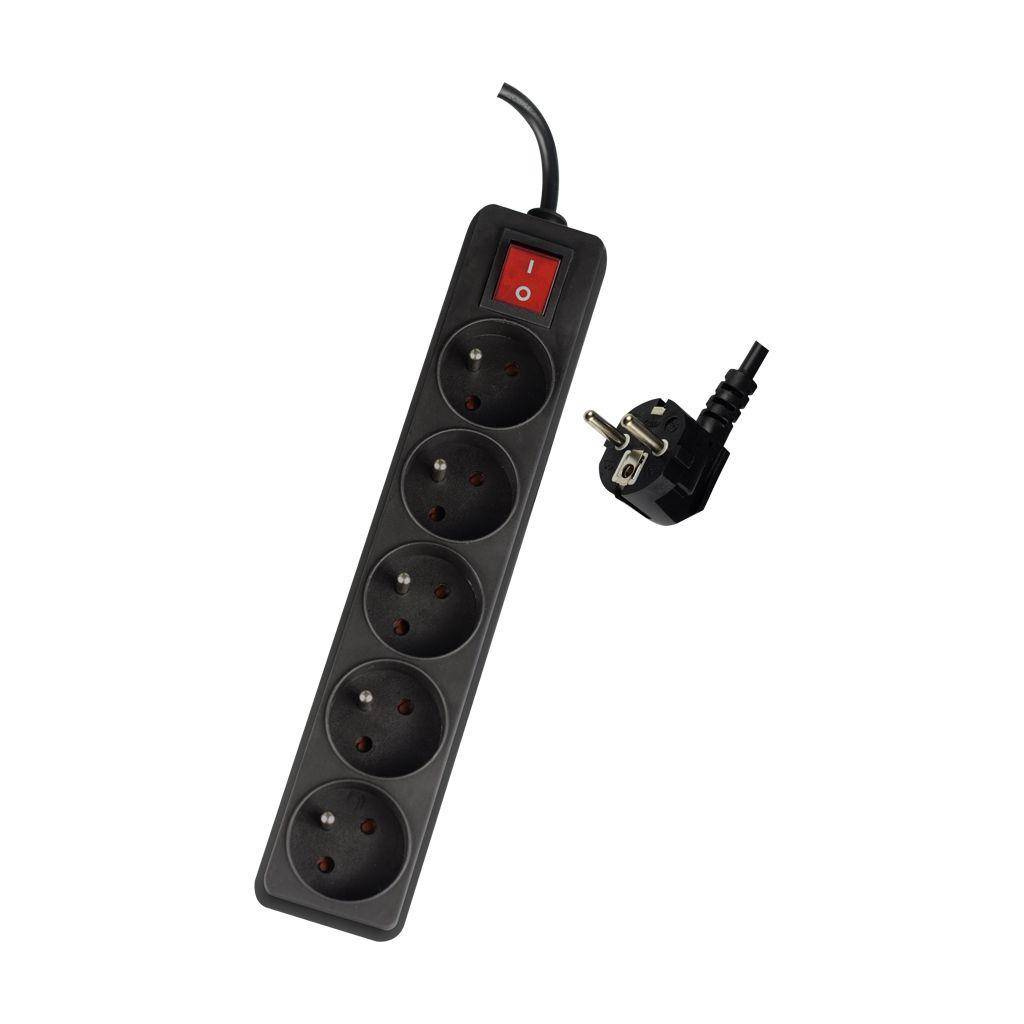 ,Przedłużacz w kolorze czarnym, posiadający 5 gniazd z bolcem uziemiającym, wyposażony w kabel zasilający o dł. 3m oraz wyłącznik. Produkt wykonany z najwyższej jakości tworzywa sztucznego. Przeznaczony do wykorzystania wewnątrz budynku.