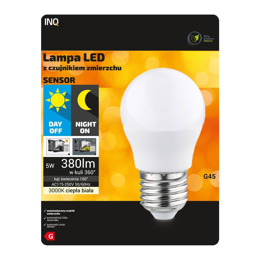 Żarówka LED E27 G45 5W ciepła 3000K z czujnikiem zmierzchu