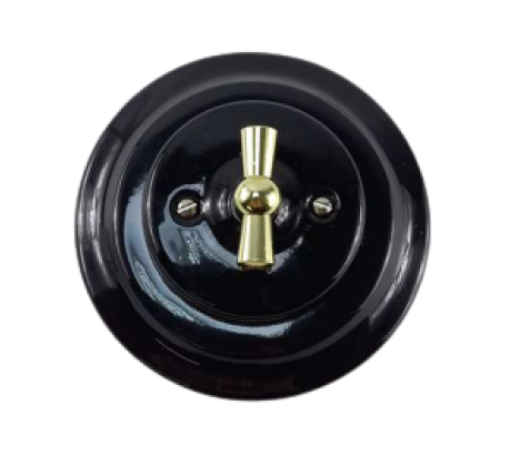 Włącznik ceramiczny obrotowy świecznikowy podtynkowy czarny ze złotym pokrętłem