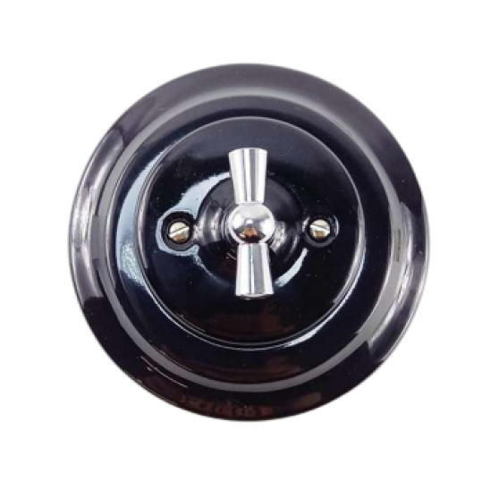 ,Elegancki włącznik pojedynczy obrotowy ceramiczny. Montaż: podtynkowy. Max. obciążenie: 10 A (2300 W). Kolor: czarny, srebrne pokrętło. Cena dotyczy samego włącznika, istnieje możliwość dokupienia ramki.