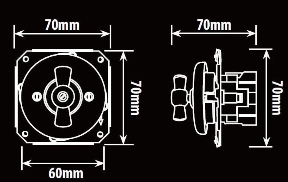 ,Elegancki włącznik podwójny krzyżowy obrotowy ceramiczny. Montaż: podtynkowy. Max. obciążenie: 10 A (2300 W). Kolor: czarny, srebrne pokrętło. Cena dotyczy samego włącznika, istnieje możliwość dokupienia ramki.