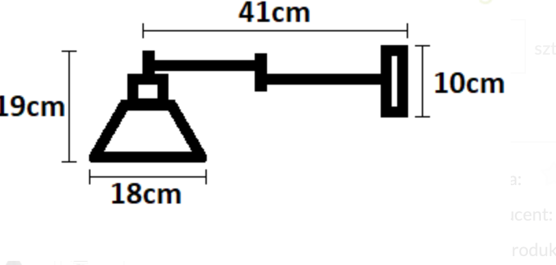 max długość ramienia 410, wysokość 190cm; średnica klosza 18, maskownica o średnicy 100