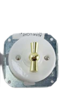 ,Elegancki włącznik pojedynczy obrotowy ceramiczny. Montaż: podtynkowy. Max. obciążenie: 10 A (2300 W). Kolor: biały, złote pokrętło. Cena dotyczy samego włącznika, istnieje możliwość dokupienia ramki.