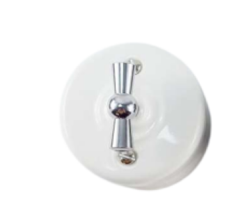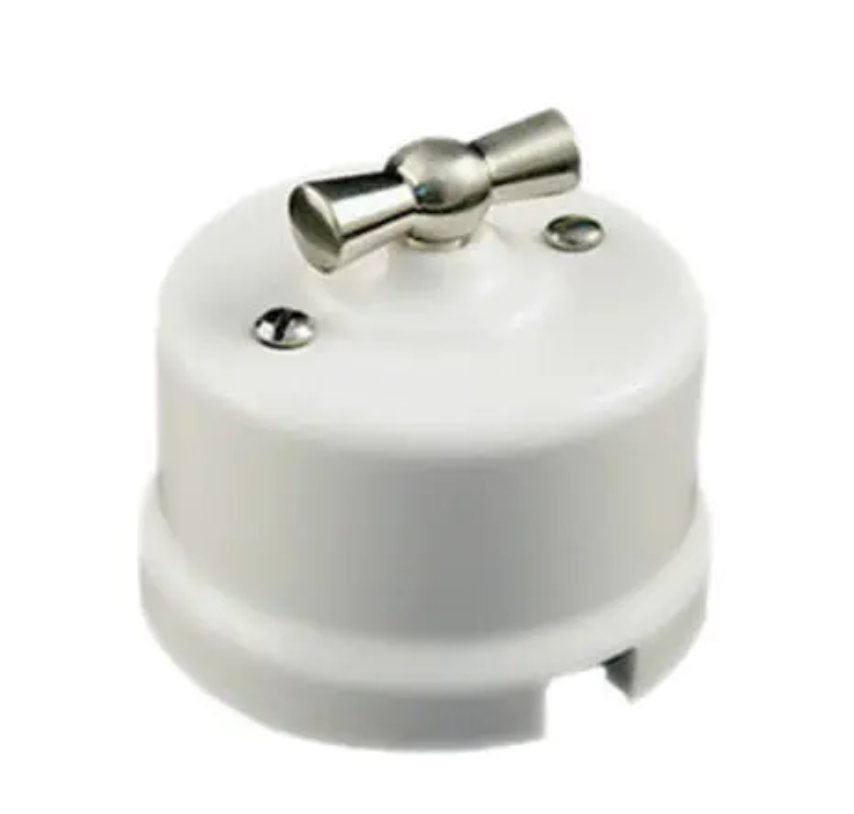 Włącznik ceramiczny obrotowy natynkowy podwójny biały ze srebrnym pokrętłem