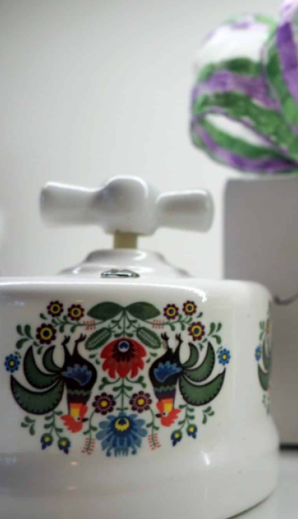 Włącznik światła ceramiczny ze zdobieniem regionalnym to wyjątkowy produkt serii oferującej starannie zaprojektowane kolekcje instalacji oświetleniowych. Cała seria wykonana została z wysokiej jakości ceramiki powlekanej porcelaną w kolorze białym lub czarnym. Produkt jednobiegunowy w kolorze białym ze zdobieniem regionalnym ma wysokość 67 mm i średnicę Ø 60 mm. Przeznaczony jest do instalacji elektrycznej nie przekraczającej 10AX 250V. Stopień ochrony (bezpieczeństwa) produktu wynosi IP 20. Włącznik światła ceramiczny z regionalnym zdobieniem FOLK ozdobiony został ornamentami regionalnymi charakterystycznymi dla regionów kaszubskich, kurpiowskich i łowickich. Ręcznie wykonane zdobienia sprawiają, że ramka idealnie nadaje się do folklorystycznych i stylizowanych regionalnie wnętrz. UWAGA : PRODUKT NA ZAMÓWIENIE, CZAS REALIZACJI 14-21 DNI.