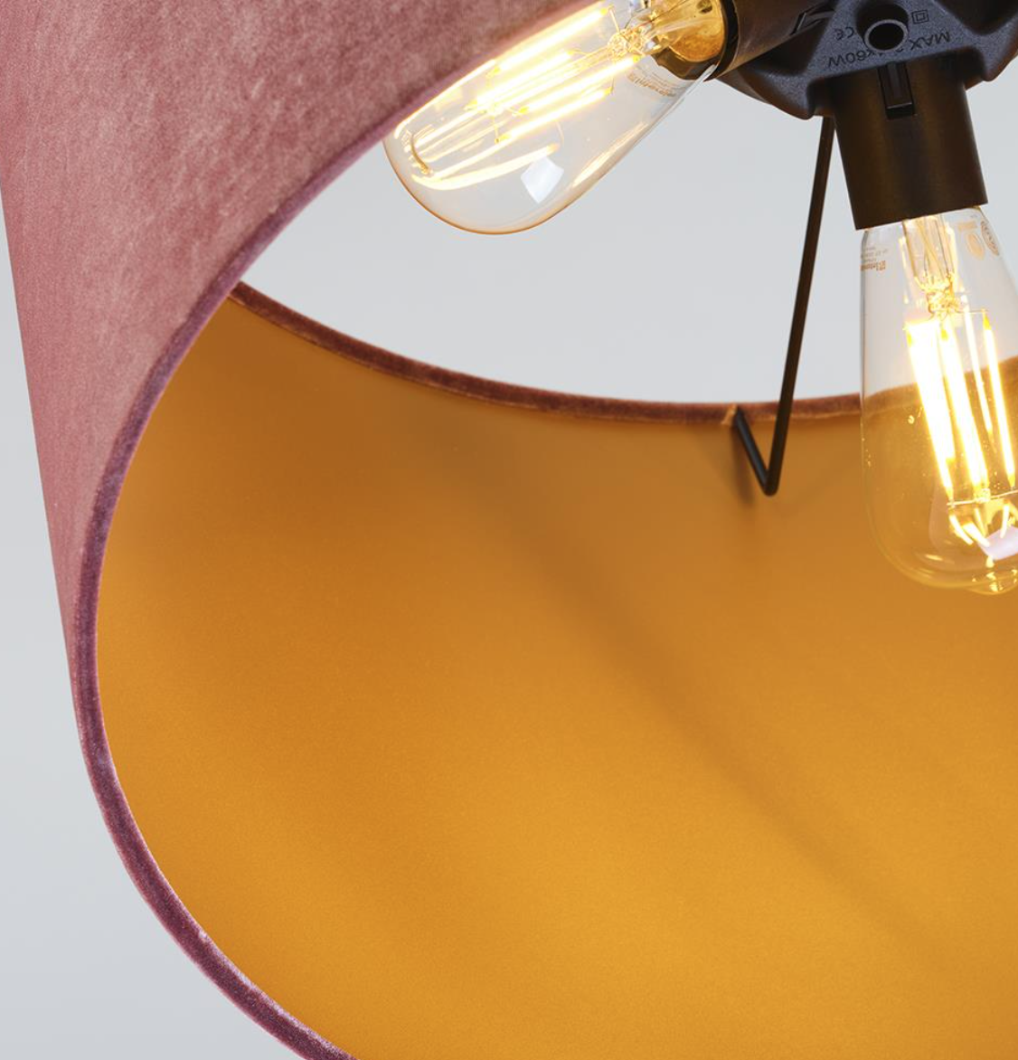 ,TERCINO to rodzina lamp, którą charakteryzuje klasa i elegancja. Abażury z tej rodziny wykonane są z welurowej tkaniny w kolorze różowym. Wnętrze abażura jest w kolorze złotym i to właśnie ta kombinacja tworzy ciekawy efekt. Lampa Tercino doda elegancji każdemu wnętrzu ze względu na minimalistyczny kształt i nawiązanie do klasyki.