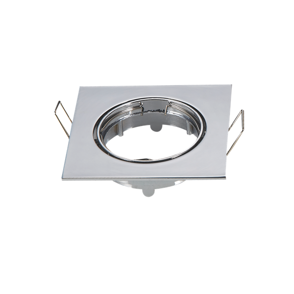 Oprawa sufitowa do żarówek halogenowych typu spot light GU10 lub MR16. Wykonana jest ze stopów cynku: wersja kolorystyczna chromowana. Tego typu oprawa przeznaczona jest w szczególności do montażu w sufitach gipsowo - kartonowych. Jest możliwość regulacji kierunku świecenia. Do oprawy można dokupić żarówki oraz wtyki (patrz produkty powiązane)