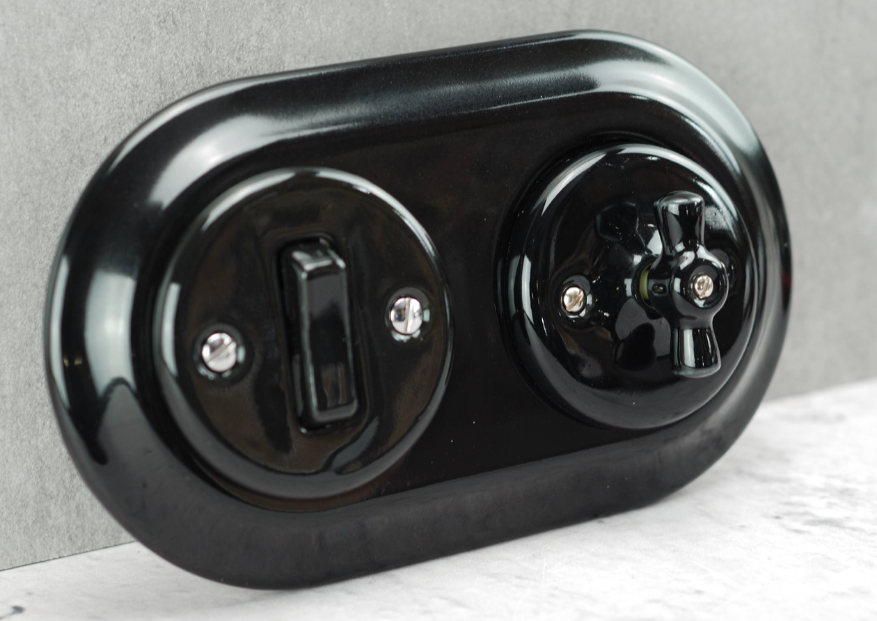 Włącznik ceramiczny pojedynczy podtynkowy czarny Retro bez ramki