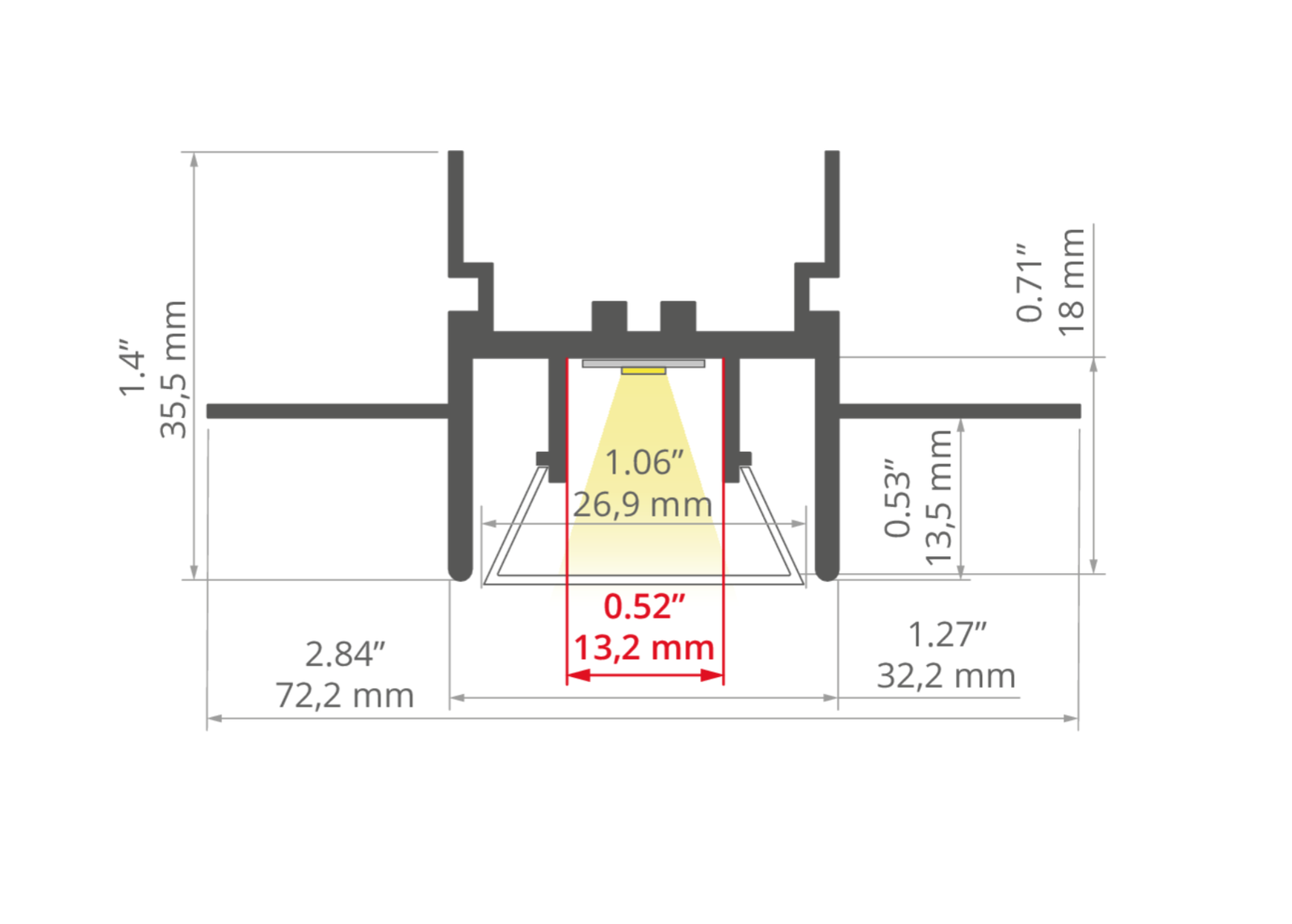 Profil dedykowany jest do zastosowań wewnętrznych. Pozwala na tworzenie sufitów w technologii "napinanej folii" ze zintegrowanym źródłem światła LED oraz budowanie sufitów podwieszanych. Produkt został wyposażony w kanał, który jest przystosowany do mocowań standardowych harpunów stosowanych w powierzchniach napinanych.