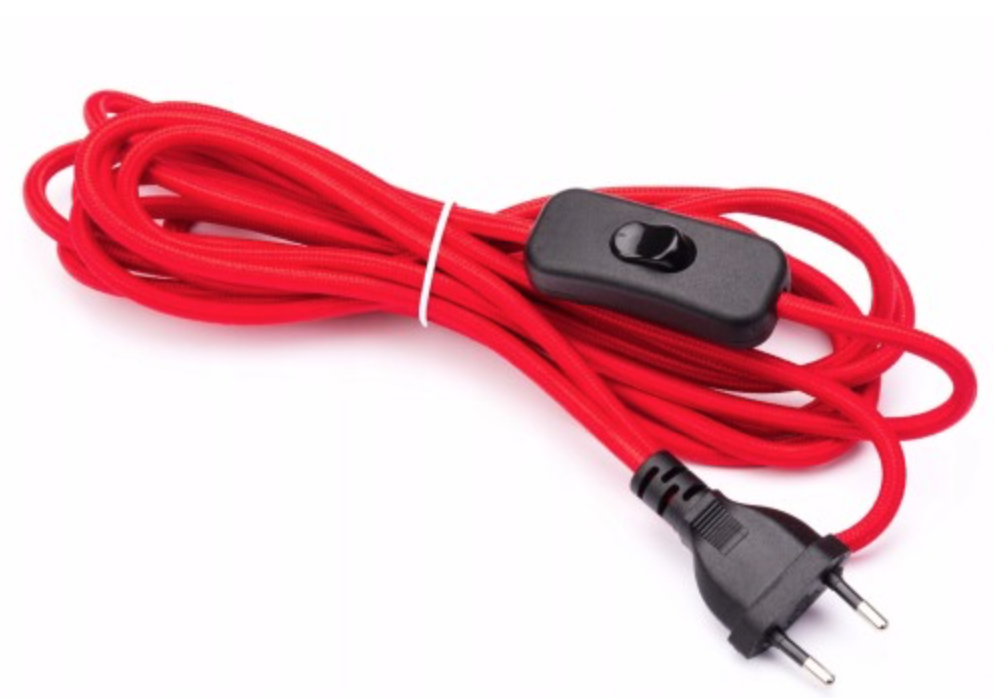 Przewód w oplocie dekoracyjnym 2,5m z włącznikiem czerwony