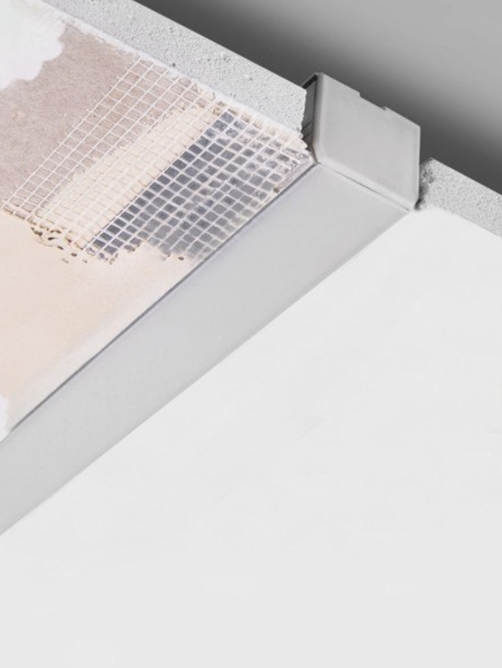,Profil KOZEL nieanodowany przeznaczony jest do tworzenia linii światła zlicowanych z powierzchnią ścian i sufitów. Montaż odbywa się za pomocą kleju montażowego gdzie skrzydła mocujące profilu pokryte są gładzią gipsową. Montaż w zabudowie gipsowo-kartonowej, za pomocą klejów montażowych,