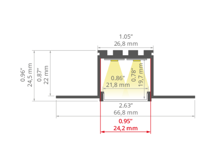 Profil do LED KOZEL architektoniczny wpuszczany Kluś surowy 2m
