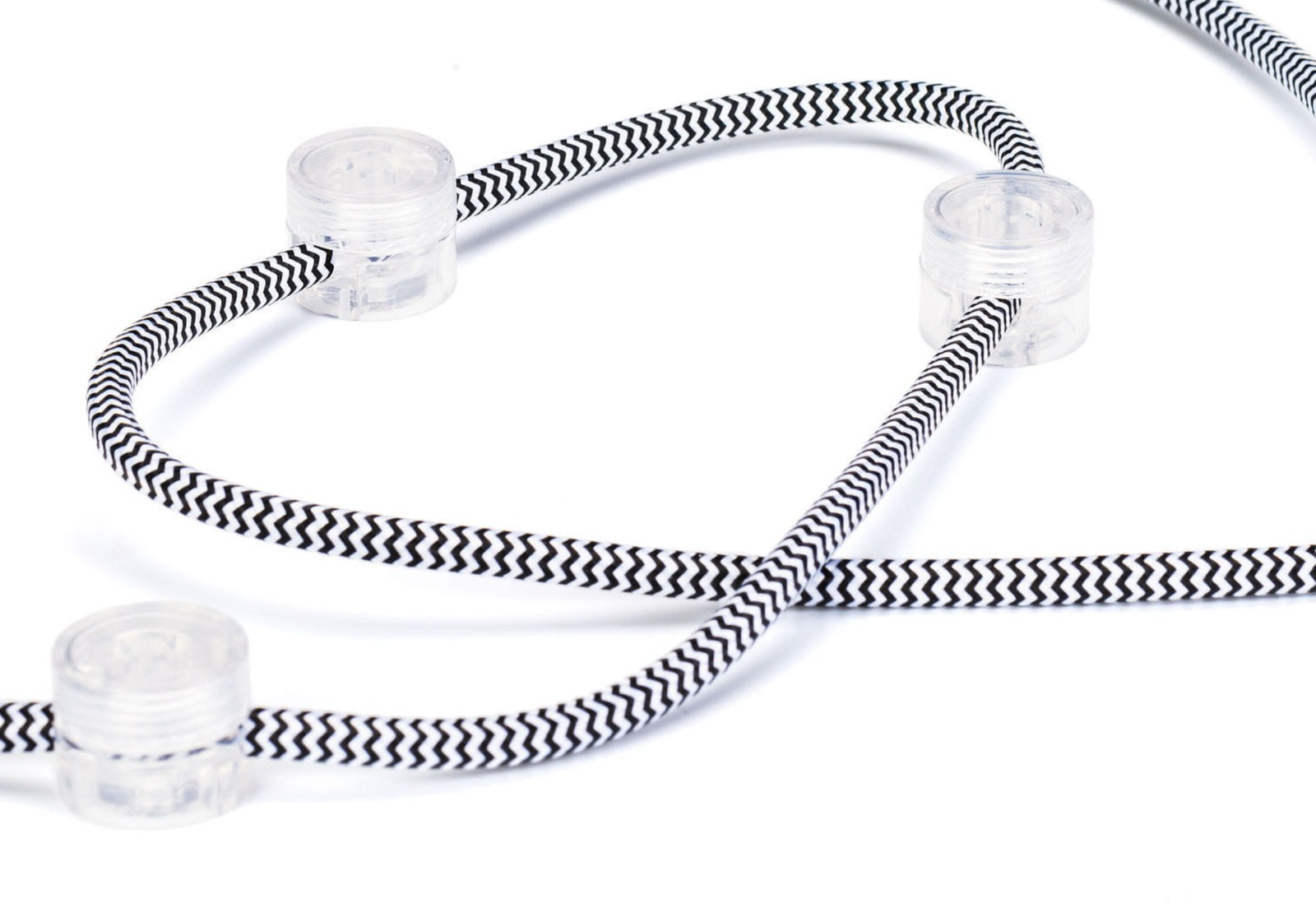 ,Uchwyt do mocowania kabli elektrycznych i oświetleniowych na ścianie lub suficie. Pozwala na rozmieszczenie przewodów na ścianie w dowolny sposób i według własnych potrzeb. Uchwyt jest odpowiedni do okrągłych kabli w oplocie oraz kabli skręcanych. Idealnie pasuje jako wykończenie wnętrz loftowych oraz wnętrz w stylu retro.