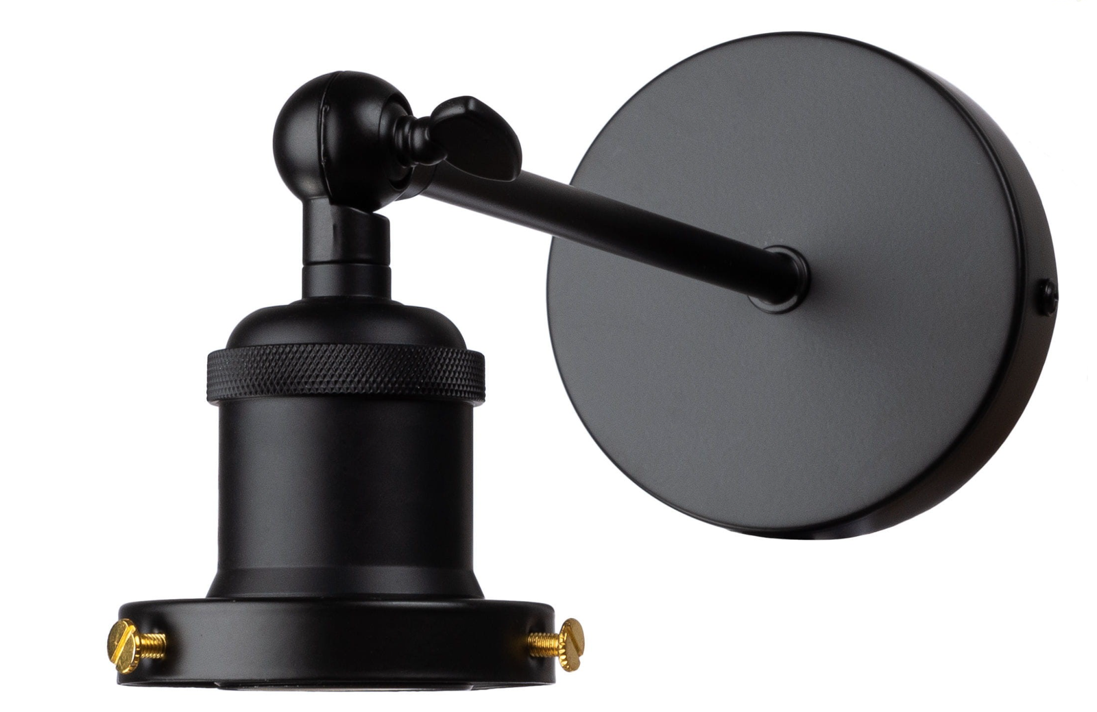 ,Stelaż kinkietu w loftowej stylistyce. Lampa wykonana jest z metalu w kolorze matowej czerni. Oprawa w kolorze czarnym sprawia że kinkiet znakomicie prezentuje się również w nowoczesnych wnętrzach. Dodatkowym atutem kinkietu jest możliwość ustawienia klosza pod różnym kątem. Regulacja motylkowa (góra dół) Kinkiet świetnie prezentuje się na tle betonu i surowej cegły może być również odważnym akcentem w rustykalnych wnętrzach. Oprawa kinkietu na gwint E27. Oprawa daje duże możliwości aranżacyjne, można dowolnie dopasować klosz i żarówki.