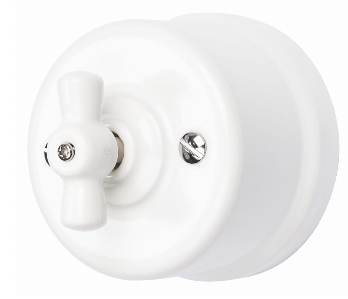 Włącznik ceramiczny obrotowy pojedynczy biały natynkowy