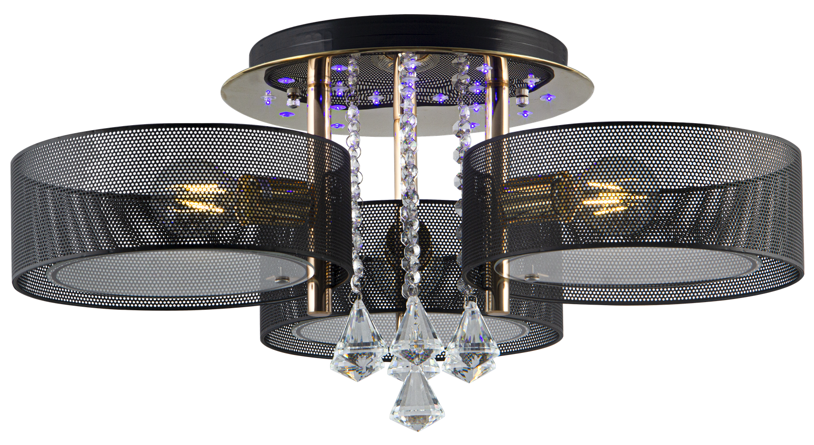 ,Elegancja a zarazem funkcjonalna lampa sufitowa, plafon ANTILA. Okrągłe klosze świetnie współgrają z chromowanym wykończeniem podsufitki oraz zwisającymi kryształami. Dołączony do zestawu pilot pozwala samodzielnie wybrać rodzaj światła jaki w danej chwili chcemy użytkować. Pozwala on na włączenie samych żarówek, samych ledów, obu źródeł światła jednocześnie oraz zmianę barwy światła led. Żarówki 3xE27 należy dokupić.